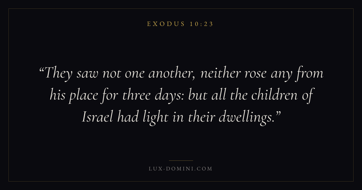 They saw not one another, neither rose any from his place for three days: but all the children of Israel had light in their dwellings.