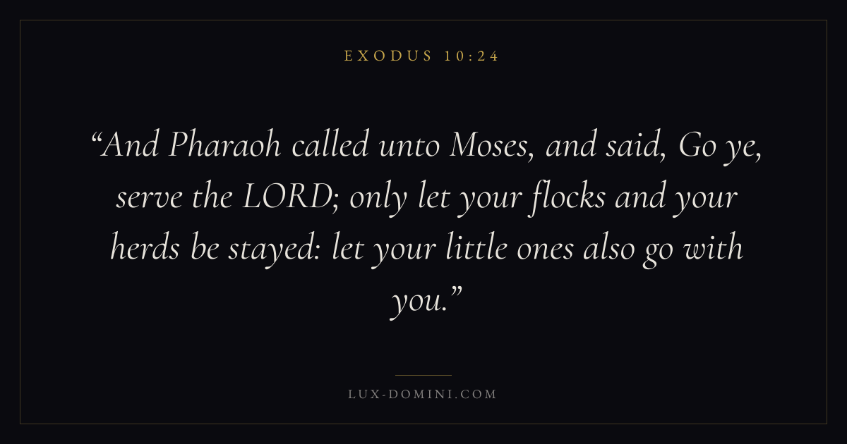 And Pharaoh called unto Moses, and said, Go ye, serve the LORD; only let your flocks and your herds be stayed: let your little ones also go with you.