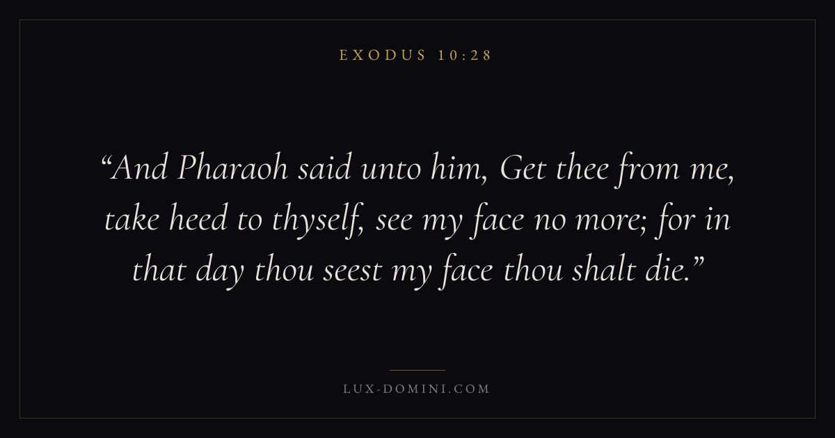 And Pharaoh said unto him, Get thee from me, take heed to thyself, see my face no more; for in that day thou seest my face thou shalt die.