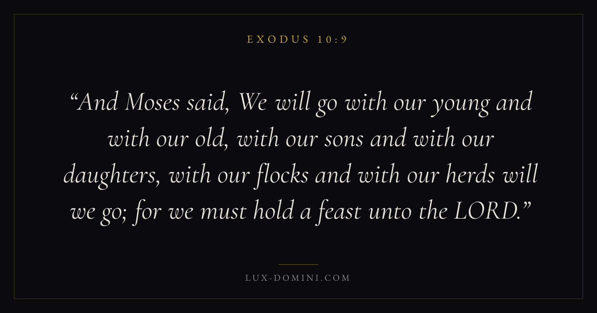 And Moses said, We will go with our young and with our old, with our sons and with our daughters, with our flocks and with our herds will we go; for we must hold a feast unto the LORD.