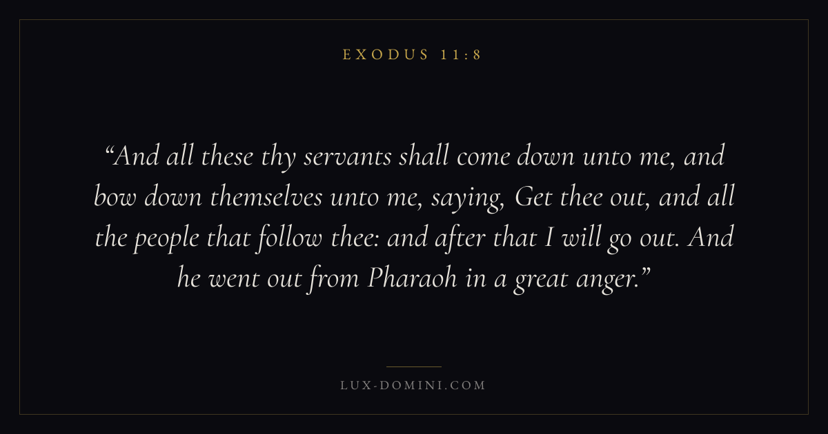 And all these thy servants shall come down unto me, and bow down themselves unto me, saying, Get thee out, and all the people that follow thee: and after that I will go out. And he went out from Pharaoh in a great anger.
