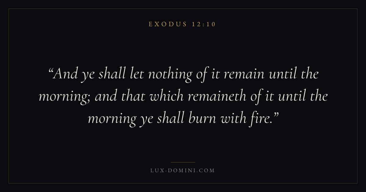 And ye shall let nothing of it remain until the morning; and that which remaineth of it until the morning ye shall burn with fire.