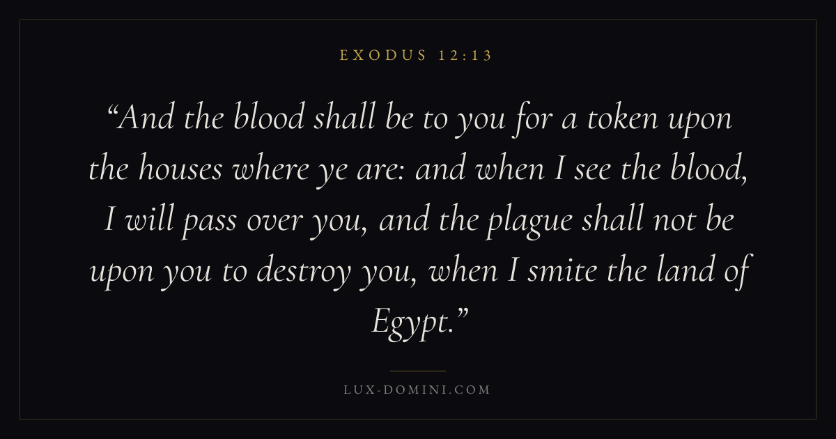 And the blood shall be to you for a token upon the houses where ye are: and when I see the blood, I will pass over you, and the plague shall not be upon you to destroy you, when I smite the land of Egypt.