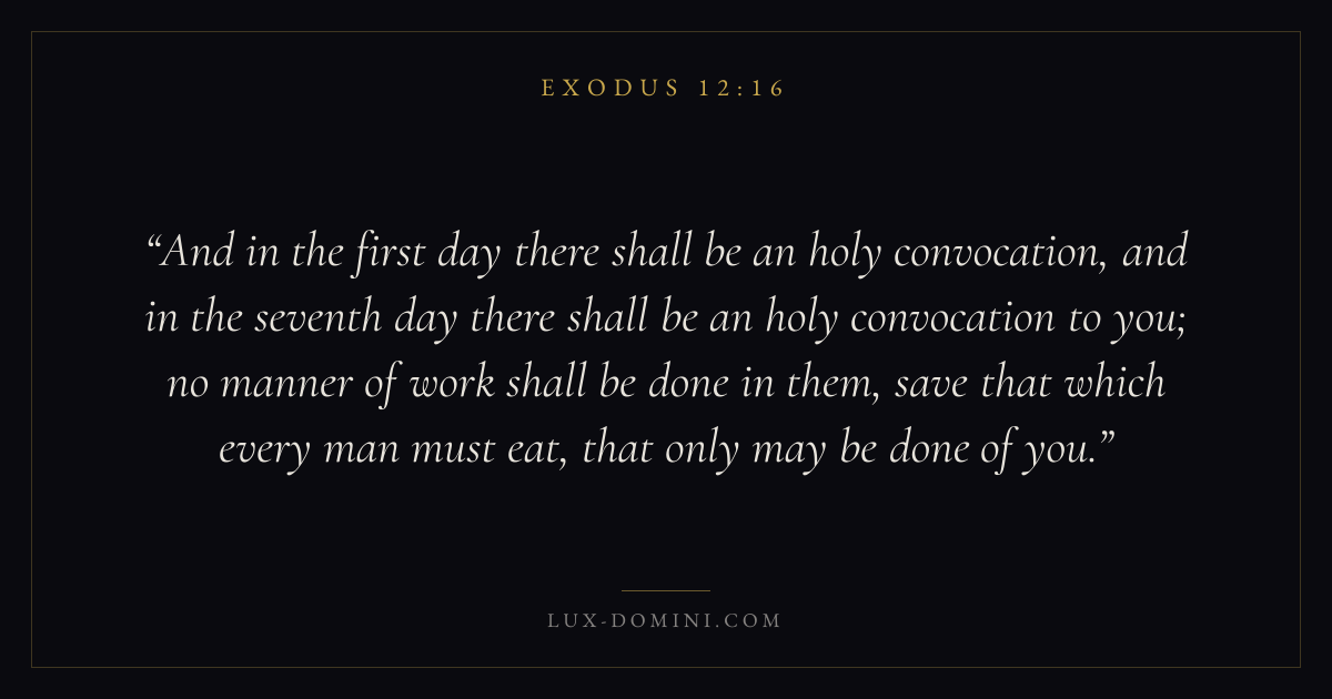 And in the first day there shall be an holy convocation, and in the seventh day there shall be an holy convocation to you; no manner of work shall be done in them, save that which every man must eat, that only may be done of you.