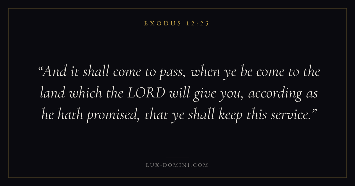 And it shall come to pass, when ye be come to the land which the LORD will give you, according as he hath promised, that ye shall keep this service.