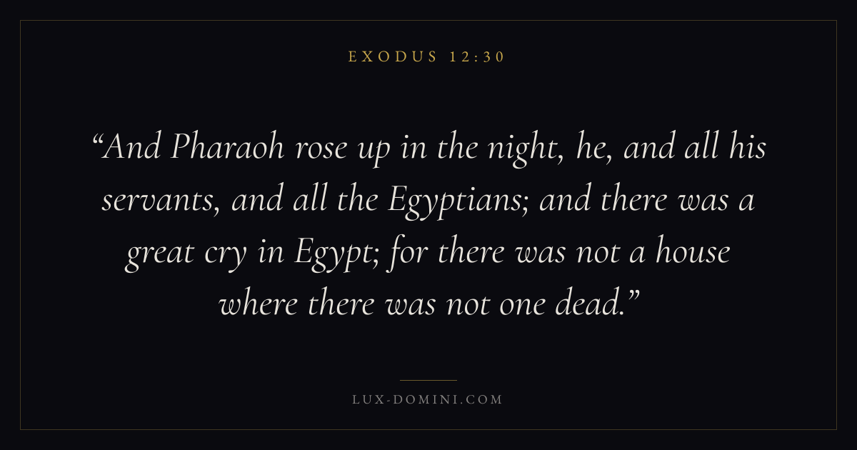 And Pharaoh rose up in the night, he, and all his servants, and all the Egyptians; and there was a great cry in Egypt; for there was not a house where there was not one dead.