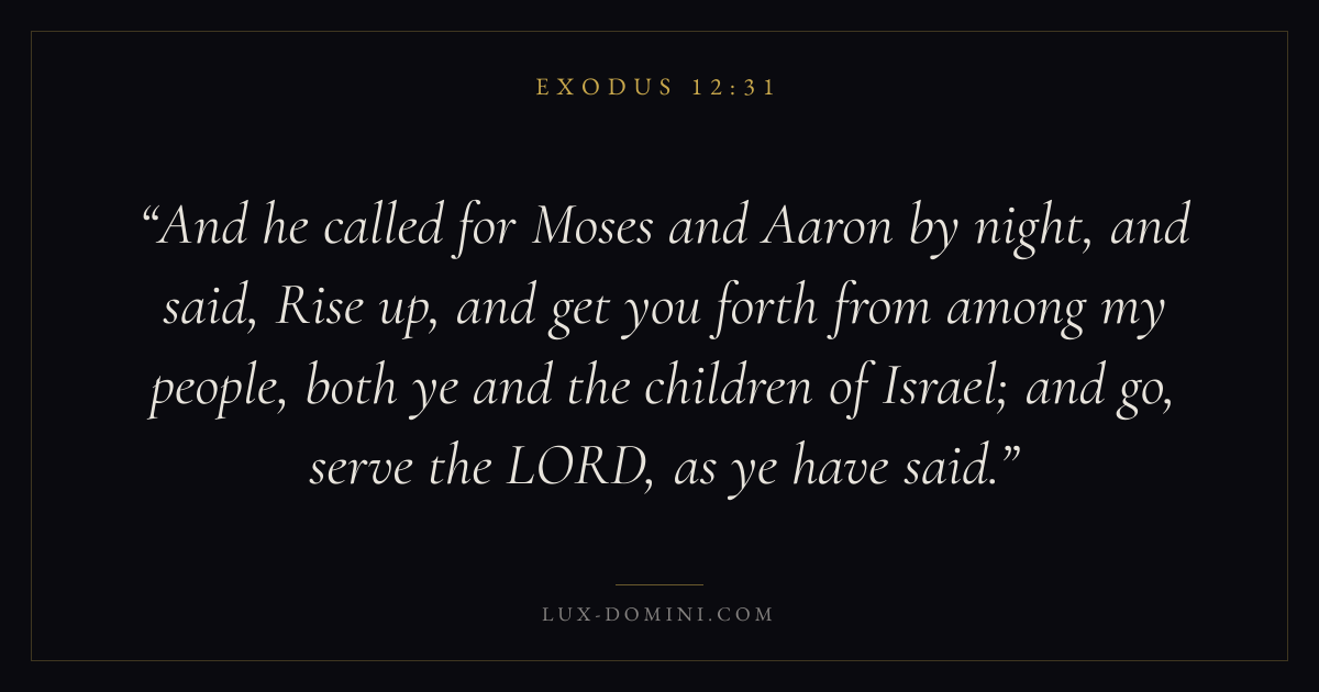 And he called for Moses and Aaron by night, and said, Rise up, and get you forth from among my people, both ye and the children of Israel; and go, serve the LORD, as ye have said.
