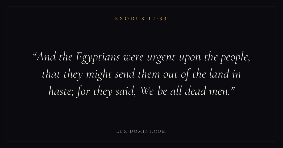 And the Egyptians were urgent upon the people, that they might send them out of the land in haste; for they said, We be all dead men.