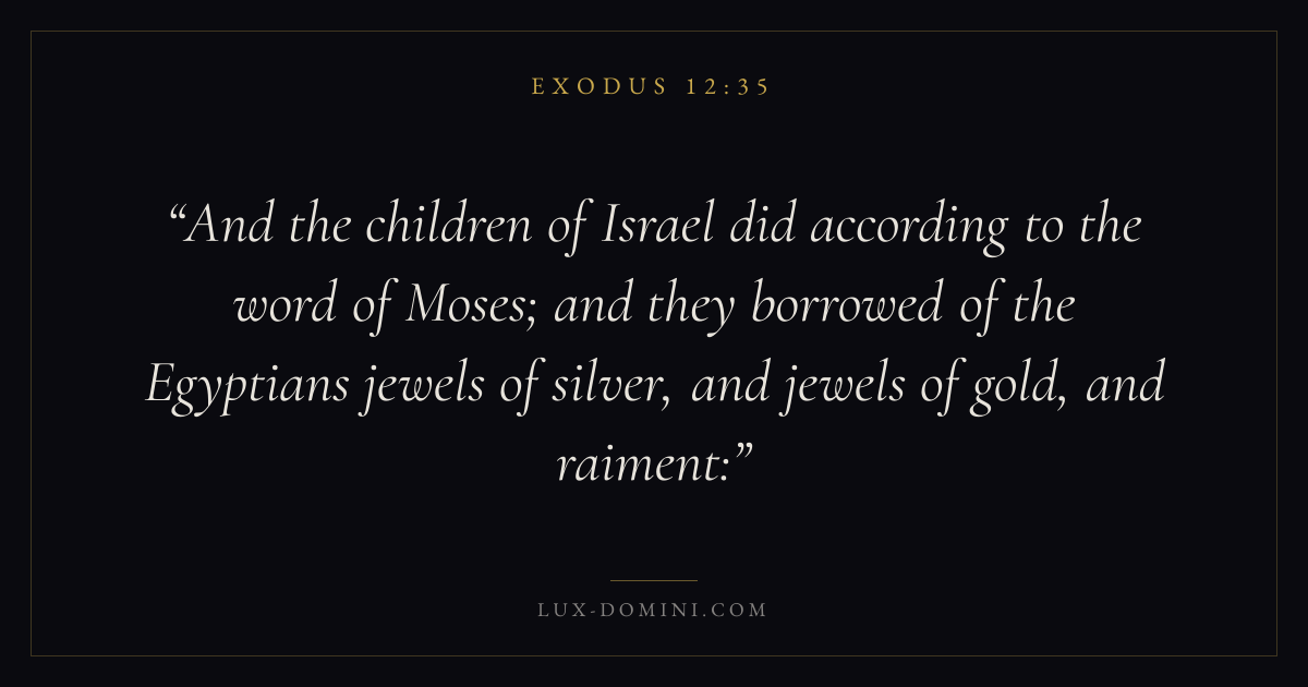 And the children of Israel did according to the word of Moses; and they borrowed of the Egyptians jewels of silver, and jewels of gold, and raiment: