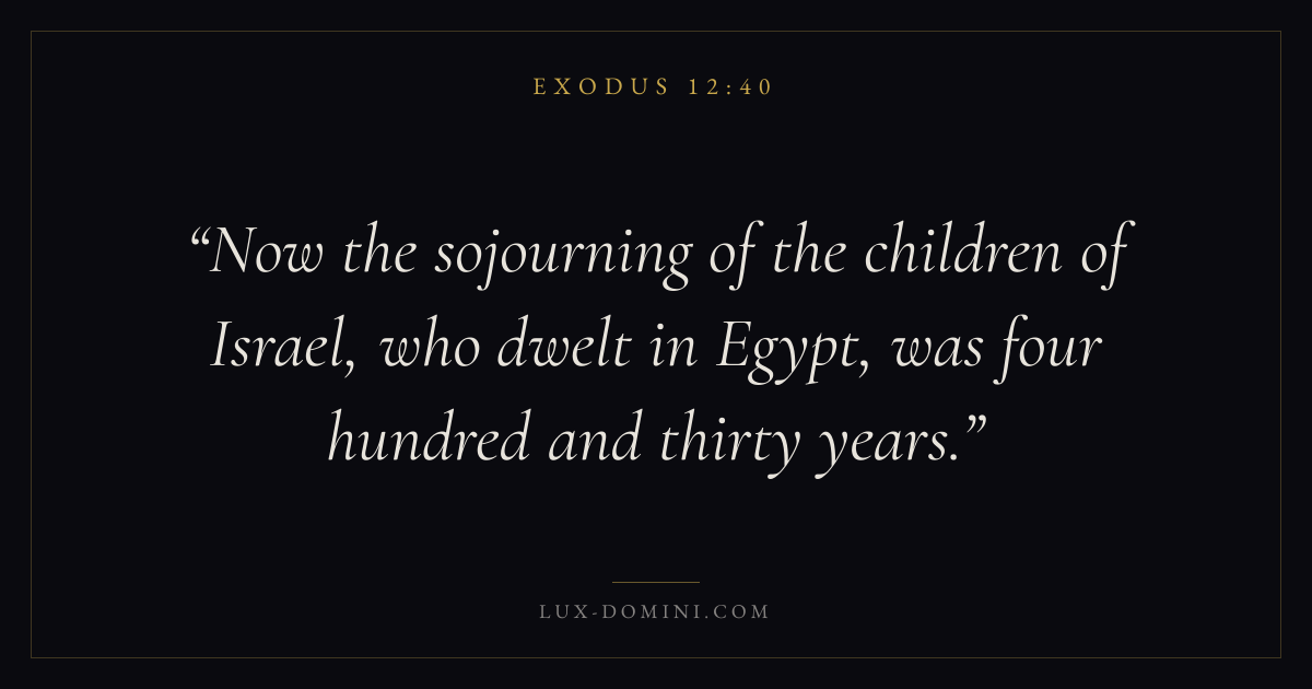 Now the sojourning of the children of Israel, who dwelt in Egypt, was four hundred and thirty years.