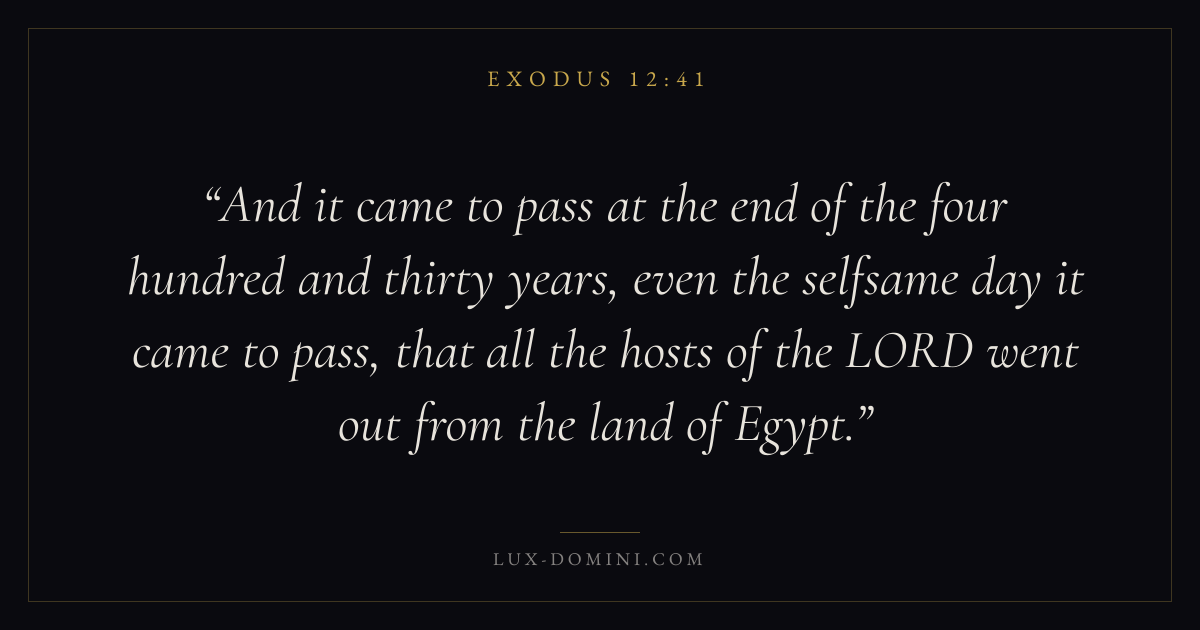 And it came to pass at the end of the four hundred and thirty years, even the selfsame day it came to pass, that all the hosts of the LORD went out from the land of Egypt.