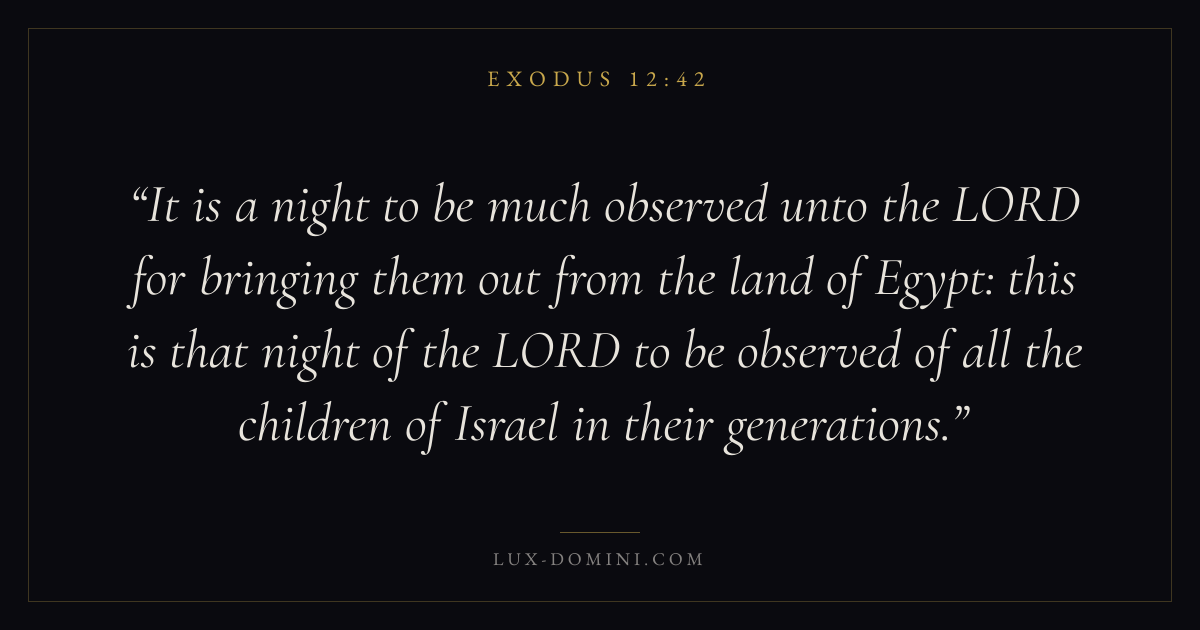 It is a night to be much observed unto the LORD for bringing them out from the land of Egypt: this is that night of the LORD to be observed of all the children of Israel in their generations.