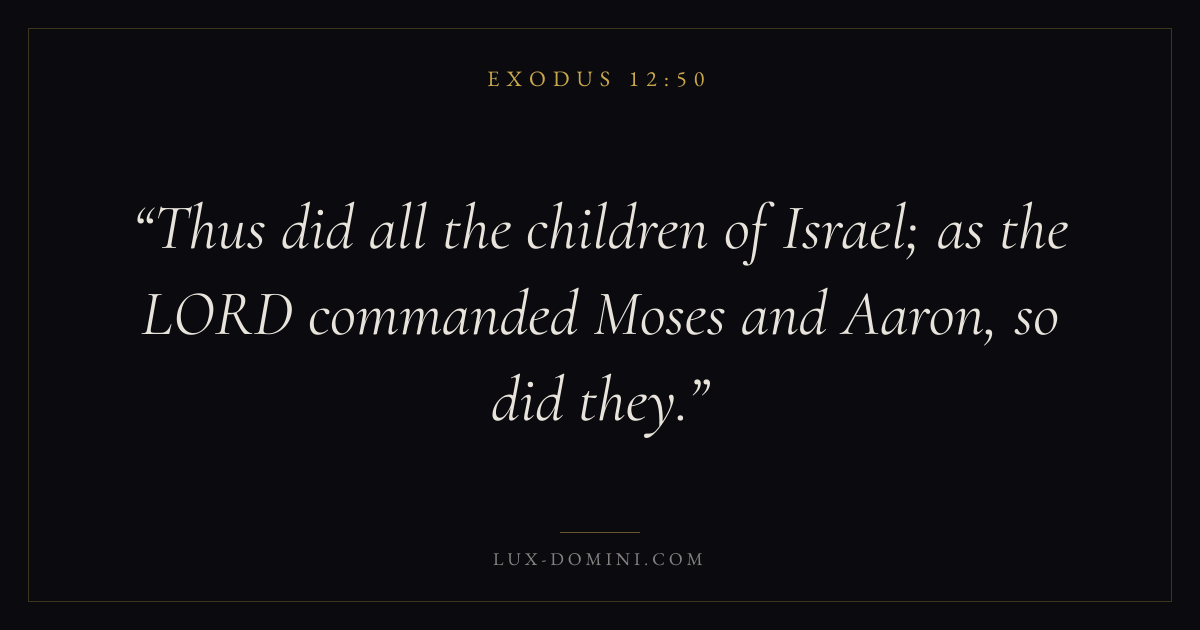 Thus did all the children of Israel; as the LORD commanded Moses and Aaron, so did they.