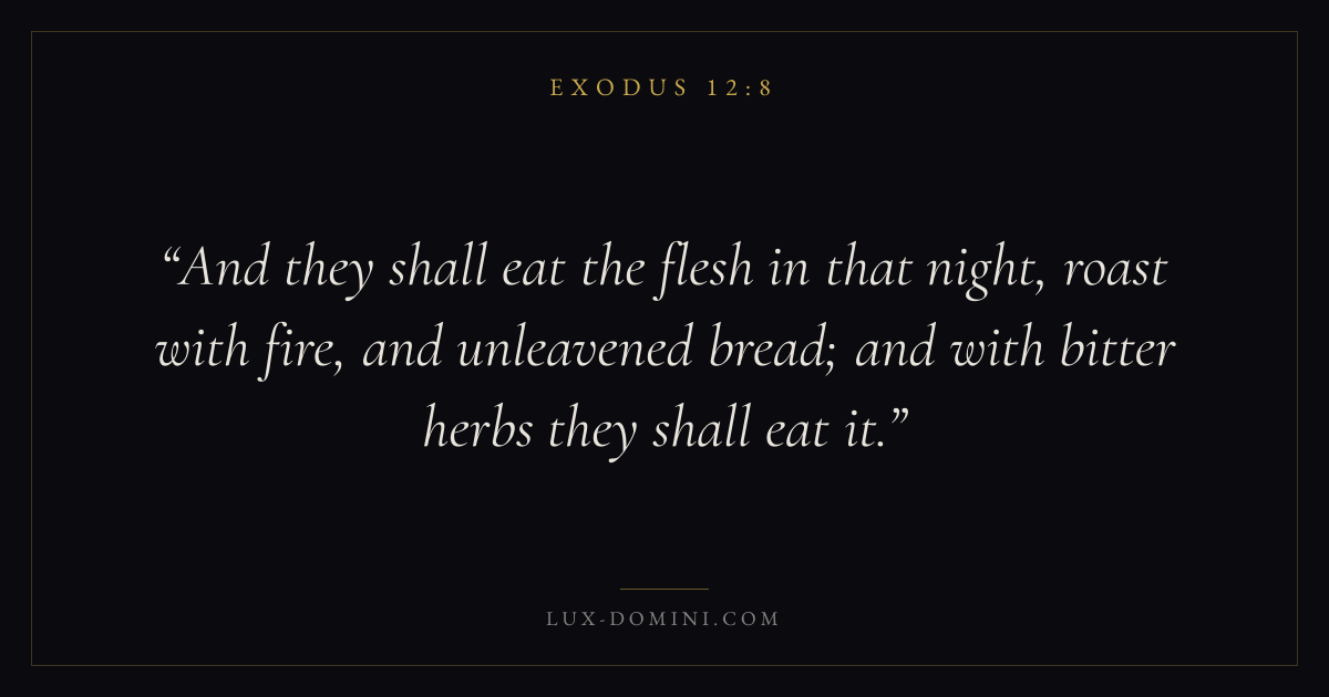 And they shall eat the flesh in that night, roast with fire, and unleavened bread; and with bitter herbs they shall eat it.
