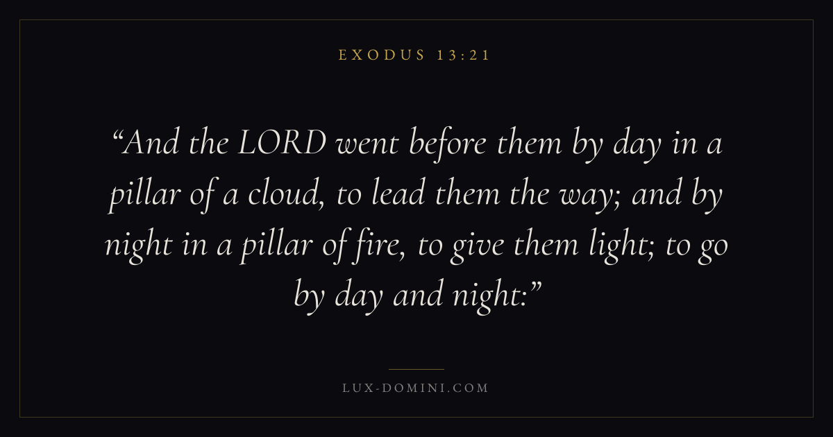 And the LORD went before them by day in a pillar of a cloud, to lead them the way; and by night in a pillar of fire, to give them light; to go by day and night: