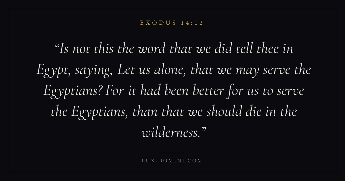 Is not this the word that we did tell thee in Egypt, saying, Let us alone, that we may serve the Egyptians? For it had been better for us to serve the Egyptians, than that we should die in the wilderness.