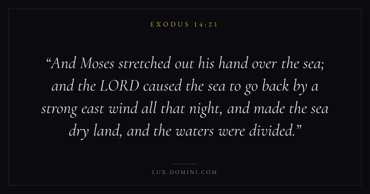 And Moses stretched out his hand over the sea; and the LORD caused the sea to go back by a strong east wind all that night, and made the sea dry land, and the waters were divided.