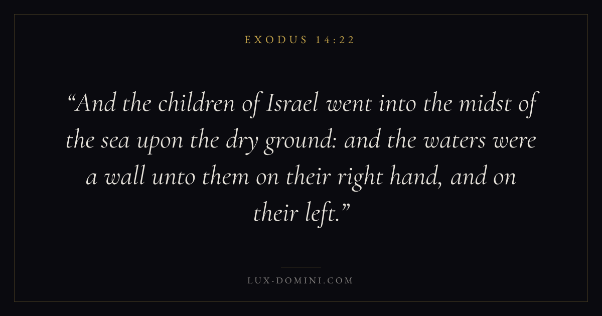 And the children of Israel went into the midst of the sea upon the dry ground: and the waters were a wall unto them on their right hand, and on their left.