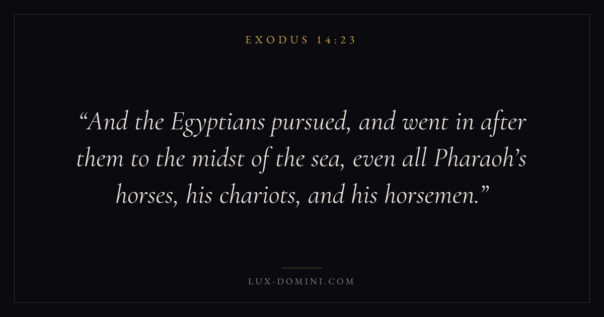 And the Egyptians pursued, and went in after them to the midst of the sea, even all Pharaoh’s horses, his chariots, and his horsemen.