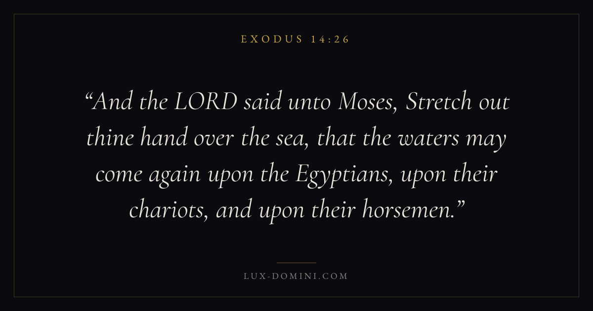 And the LORD said unto Moses, Stretch out thine hand over the sea, that the waters may come again upon the Egyptians, upon their chariots, and upon their horsemen.
