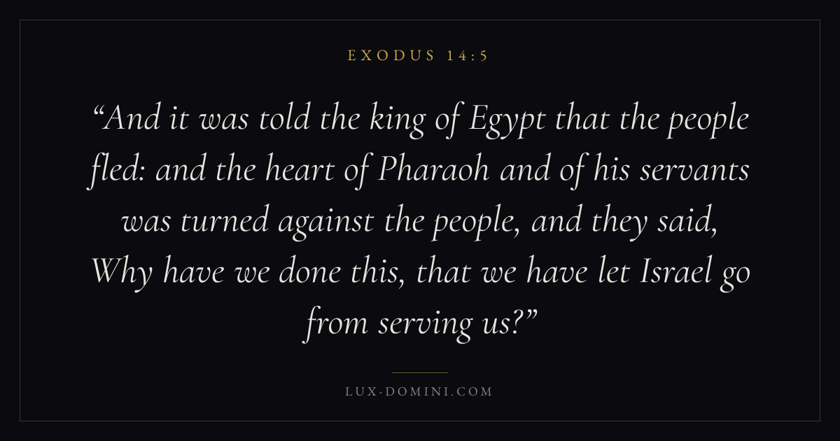And it was told the king of Egypt that the people fled: and the heart of Pharaoh and of his servants was turned against the people, and they said, Why have we done this, that we have let Israel go from serving us?