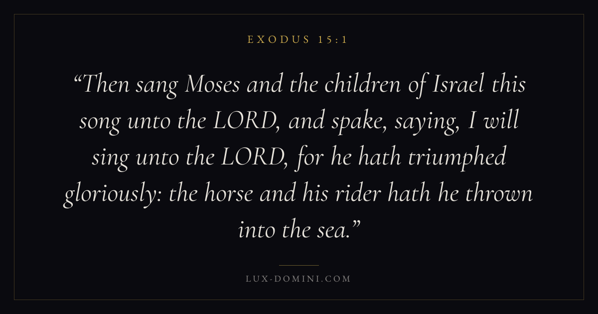 Then sang Moses and the children of Israel this song unto the LORD, and spake, saying, I will sing unto the LORD, for he hath triumphed gloriously: the horse and his rider hath he thrown into the sea.