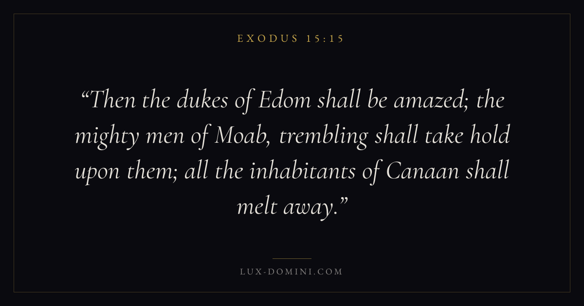 Then the dukes of Edom shall be amazed; the mighty men of Moab, trembling shall take hold upon them; all the inhabitants of Canaan shall melt away.