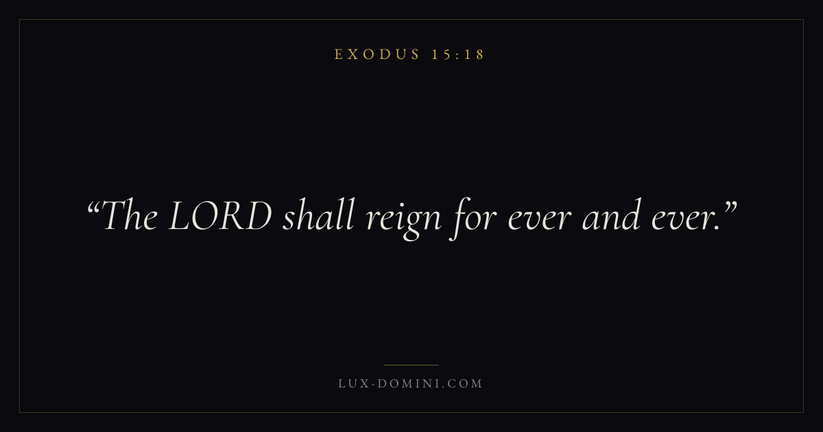 Even that same Lord that is spoken of throughout this song, and to whom everything in it is ascribed, and who is no other than the Lord Jesus Christ; his reign began in eternity, when he was set up and anointed as King over God's holy hill of Zion, his church, the elect, who were a kingdom put under his care and charge, and which he will deliver up again one day, complete and perfect: he reigned throughout the whole Old Testament dispensation, and was acknowledged as well as prophesied of as a King; in his state of humiliation he had a kingdom, though not of this world, and upon his ascension to heaven he was made and declared Lord and Christ; and thenceforward his kingdom became very visible in the Gentile world, through the ministration of his word, accompanied by his almighty power; and ever since, more or less, he has ruled by his Spirit and grace in the hearts of many of the children of men, and, ere long, will take upon him his great power, and reign, in a more visible, spiritual, and glorious manner, in the midst of his churches, in the present state of things; and then he will reign with all his saints raised from the dead, for the space of a thousand years on earth, and after that will reign with them for ever in heaven, in the ultimate state of glory and happiness: the reigns of all others are but short, or, however, but for a time, but the reign of Christ is for ever and ever; the reigns of sin, and of Satan, and of death, have an end, but of the government of Christ, and the peace thereof, there will be no end; the reigns of the greatest potentates, emperors, and kings, of cruel and tyrannical princes, such as Pharaoh, are limited to a certain time, as is the reign of antichrist, which when ended, and the saints will have got the victory over him, the song of Moses and the Lamb will be sung; but Christ's kingdom is an everlasting kingdoms, and his dominion is evermore: the Targum of Jonathan is,"let us set a crown on the head of our Redeemer, whose is the royal crown, and he is King of kings in this world, and whose is the kingdom in the world to come, and whose it is and will be for ever and ever;''and to the same purpose is the Jerusalem Targum.