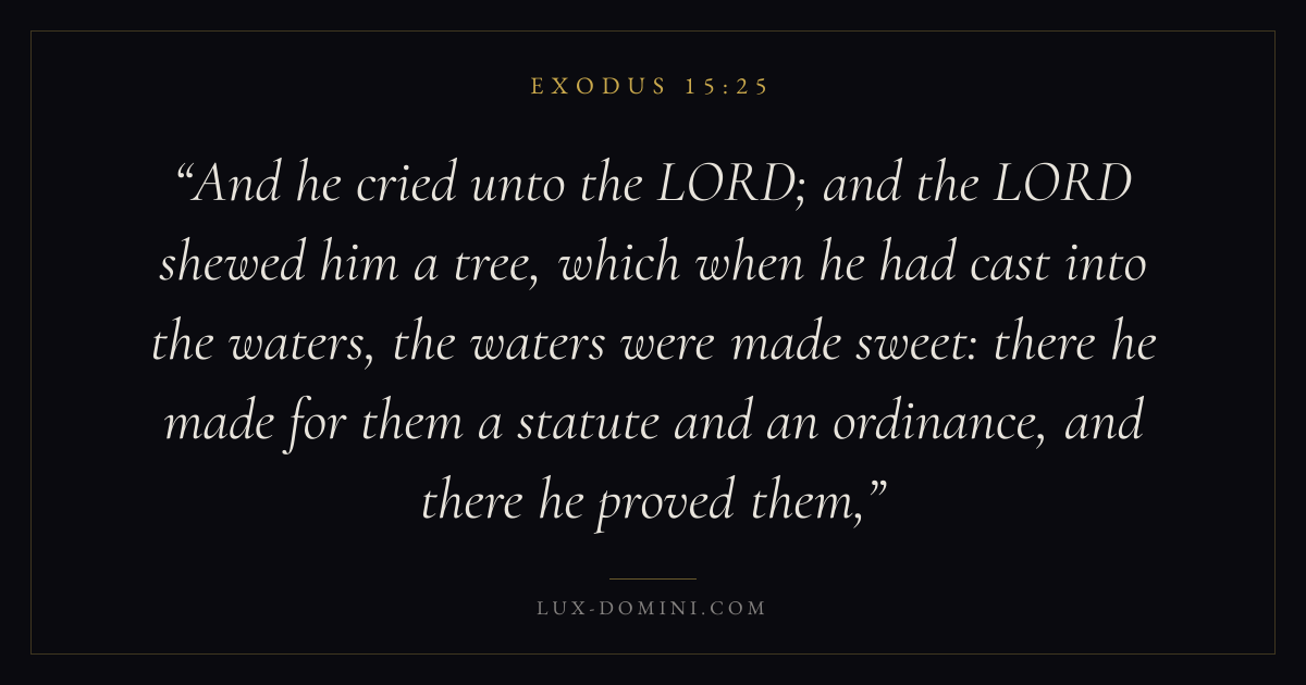 And he cried unto the LORD; and the LORD shewed him a tree, which when he had cast into the waters, the waters were made sweet: there he made for them a statute and an ordinance, and there he proved them,
