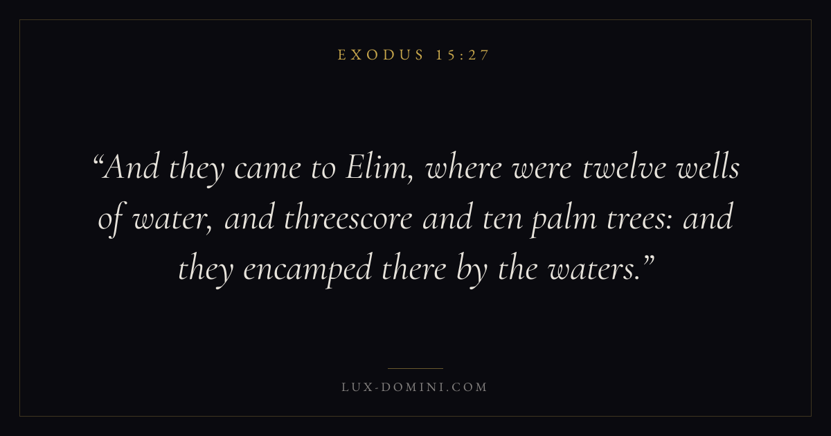 And they came to Elim, where were twelve wells of water, and threescore and ten palm trees: and they encamped there by the waters.