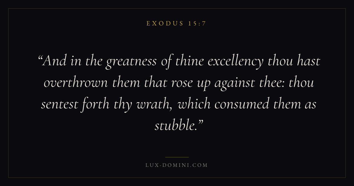 And in the greatness of thine excellency thou hast overthrown them that rose up against thee: thou sentest forth thy wrath, which consumed them as stubble.