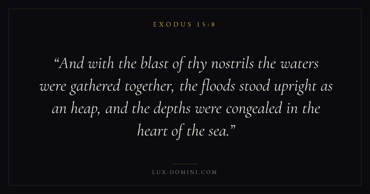 And with the blast of thy nostrils the waters were gathered together, the floods stood upright as an heap, and the depths were congealed in the heart of the sea.