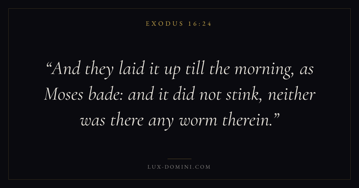 And they laid it up till the morning, as Moses bade: and it did not stink, neither was there any worm therein.