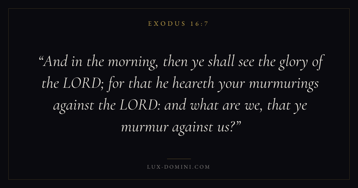 And in the morning, then ye shall see the glory of the LORD; for that he heareth your murmurings against the LORD: and what are we, that ye murmur against us?