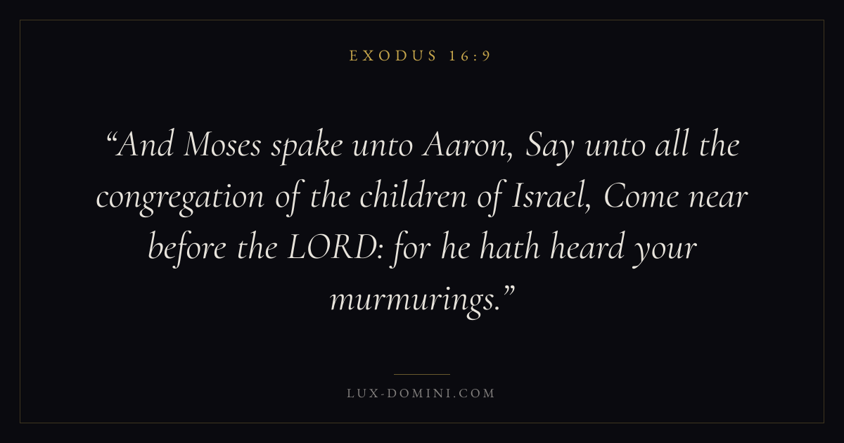 And Moses spake unto Aaron, Say unto all the congregation of the children of Israel, Come near before the LORD: for he hath heard your murmurings.