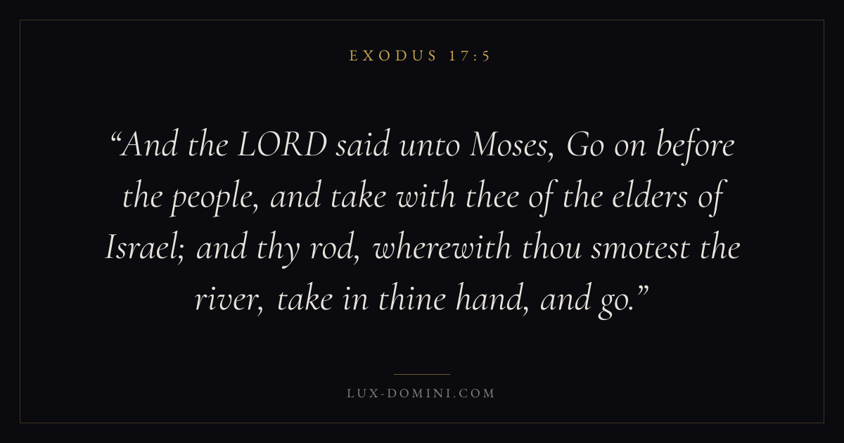 And the LORD said unto Moses, Go on before the people, and take with thee of the elders of Israel; and thy rod, wherewith thou smotest the river, take in thine hand, and go.