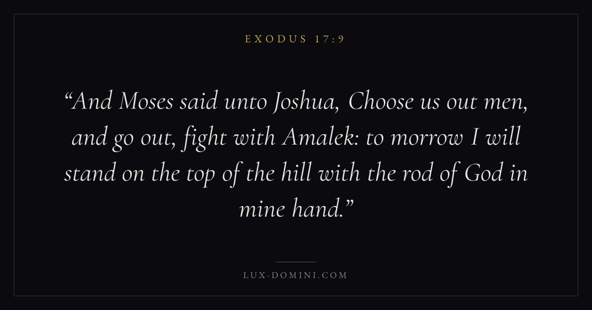 And Moses said unto Joshua, Choose us out men, and go out, fight with Amalek: to morrow I will stand on the top of the hill with the rod of God in mine hand.