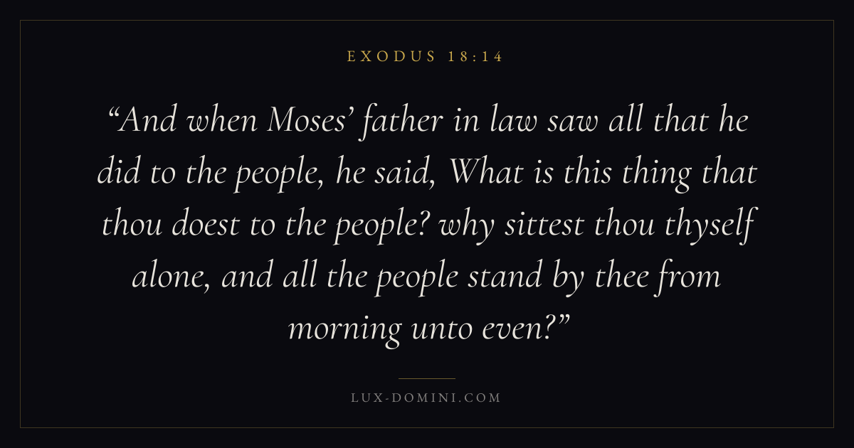And when Moses’ father in law saw all that he did to the people, he said, What is this thing that thou doest to the people? why sittest thou thyself alone, and all the people stand by thee from morning unto even?