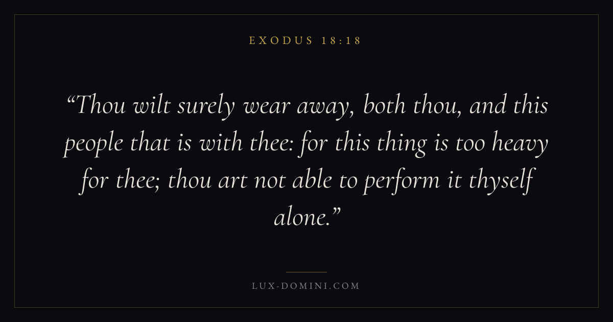 Thou wilt surely wear away, both thou, and this people that is with thee: for this thing is too heavy for thee; thou art not able to perform it thyself alone.