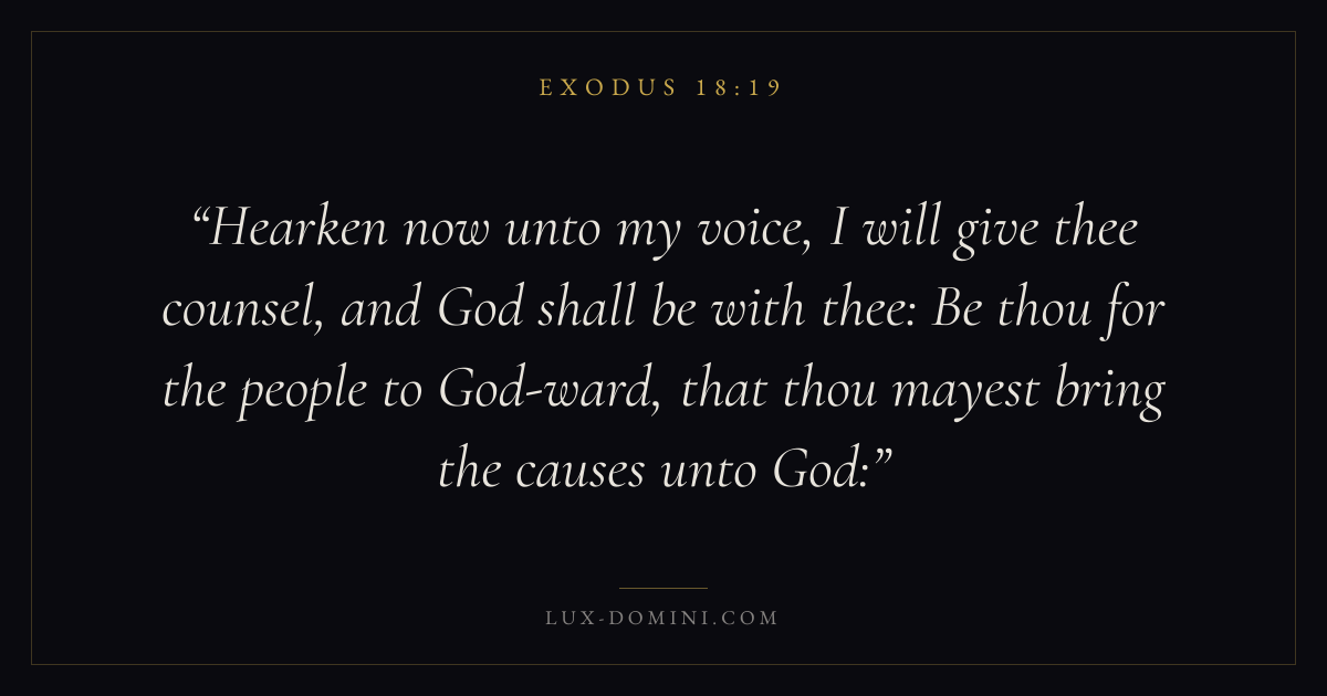 Hearken now unto my voice, I will give thee counsel, and God shall be with thee: Be thou for the people to God-ward, that thou mayest bring the causes unto God: