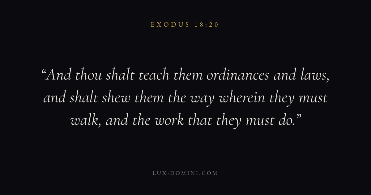 And thou shalt teach them ordinances and laws, and shalt shew them the way wherein they must walk, and the work that they must do.