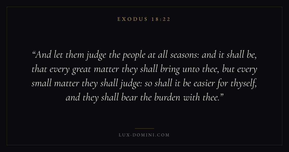 And let them judge the people at all seasons: and it shall be, that every great matter they shall bring unto thee, but every small matter they shall judge: so shall it be easier for thyself, and they shall bear the burden with thee.