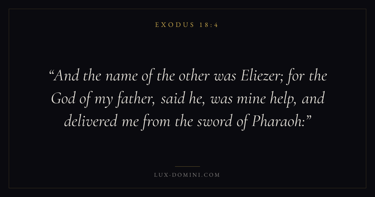 And the name of the other was Eliezer; for the God of my father, said he, was mine help, and delivered me from the sword of Pharaoh: