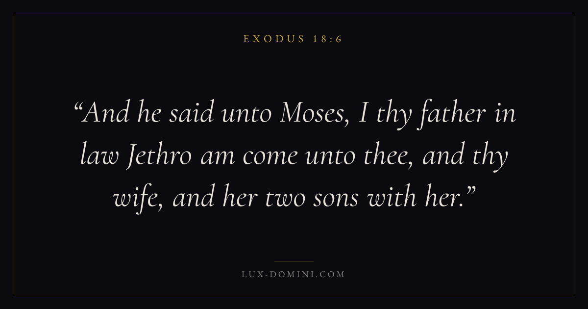 And he said unto Moses, I thy father in law Jethro am come unto thee, and thy wife, and her two sons with her.