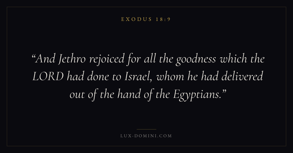 And Jethro rejoiced for all the goodness which the LORD had done to Israel, whom he had delivered out of the hand of the Egyptians.