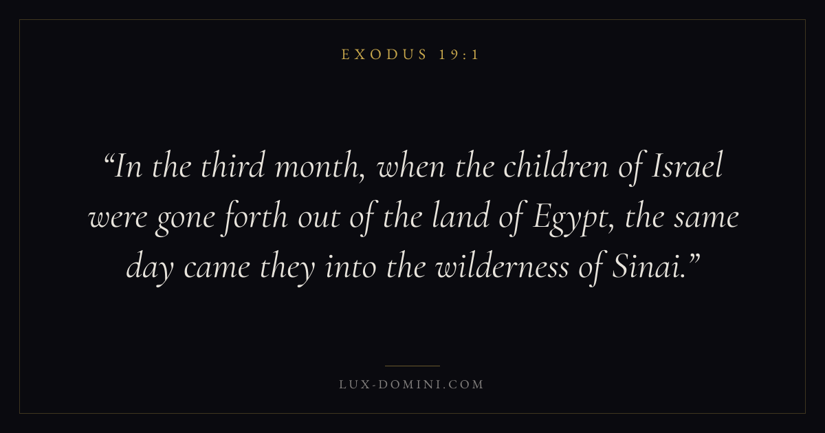 In the third month, when the children of Israel were gone forth out of the land of Egypt, the same day came they into the wilderness of Sinai.