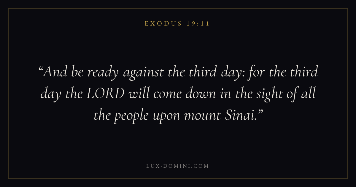 And be ready against the third day: for the third day the LORD will come down in the sight of all the people upon mount Sinai.