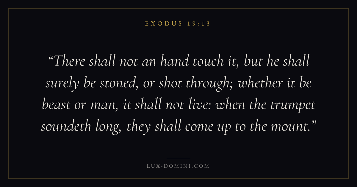 There shall not an hand touch it, but he shall surely be stoned, or shot through; whether it be beast or man, it shall not live: when the trumpet soundeth long, they shall come up to the mount.