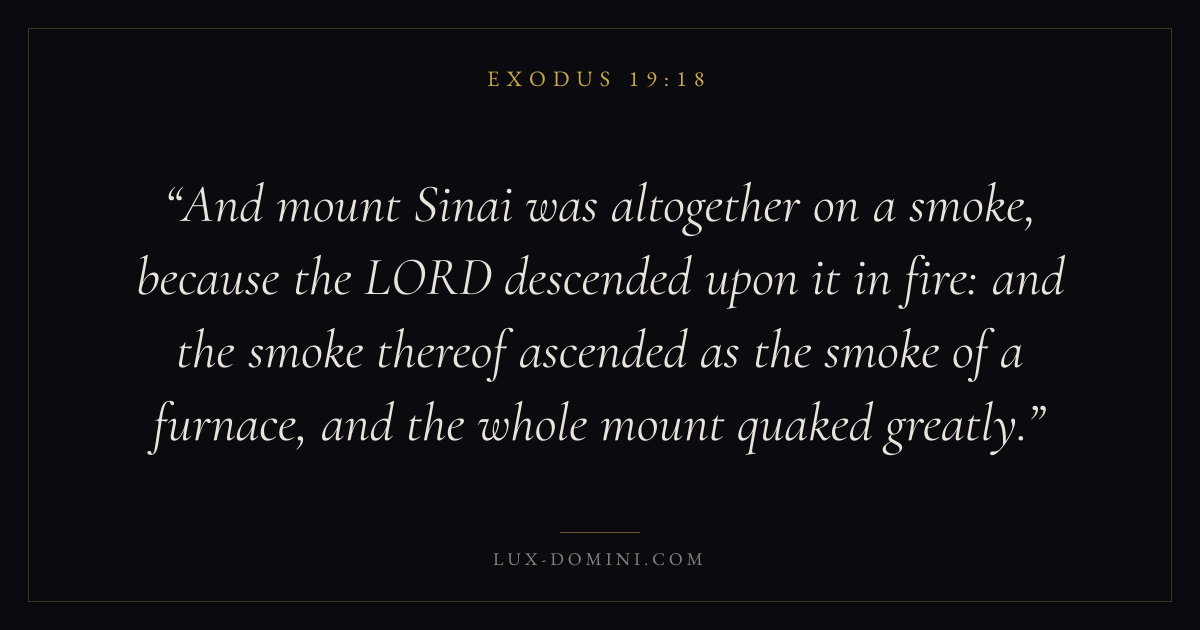 And mount Sinai was altogether on a smoke, because the LORD descended upon it in fire: and the smoke thereof ascended as the smoke of a furnace, and the whole mount quaked greatly.