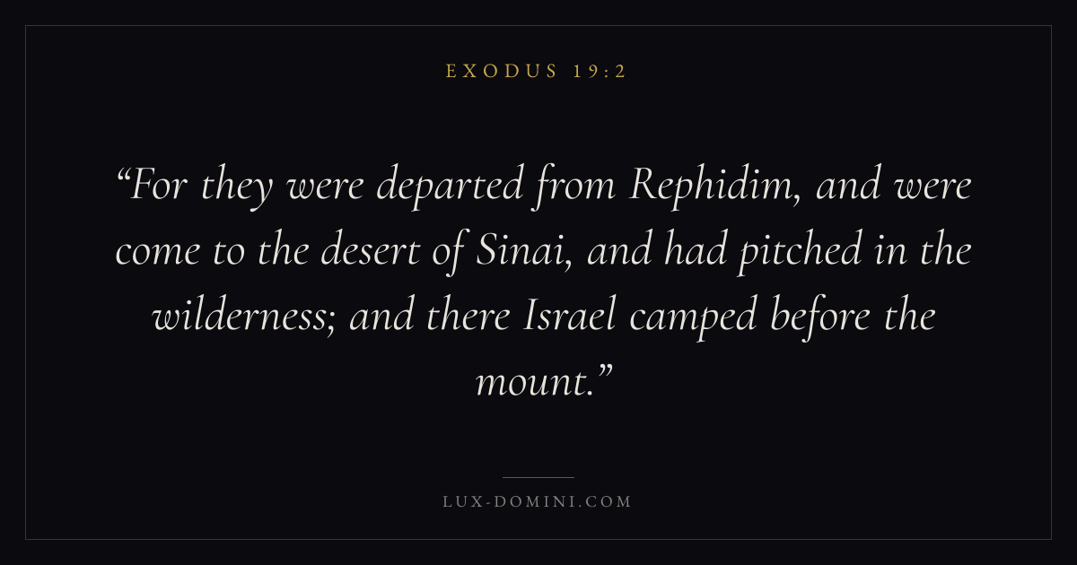 For they were departed from Rephidim, and were come to the desert of Sinai, and had pitched in the wilderness; and there Israel camped before the mount.